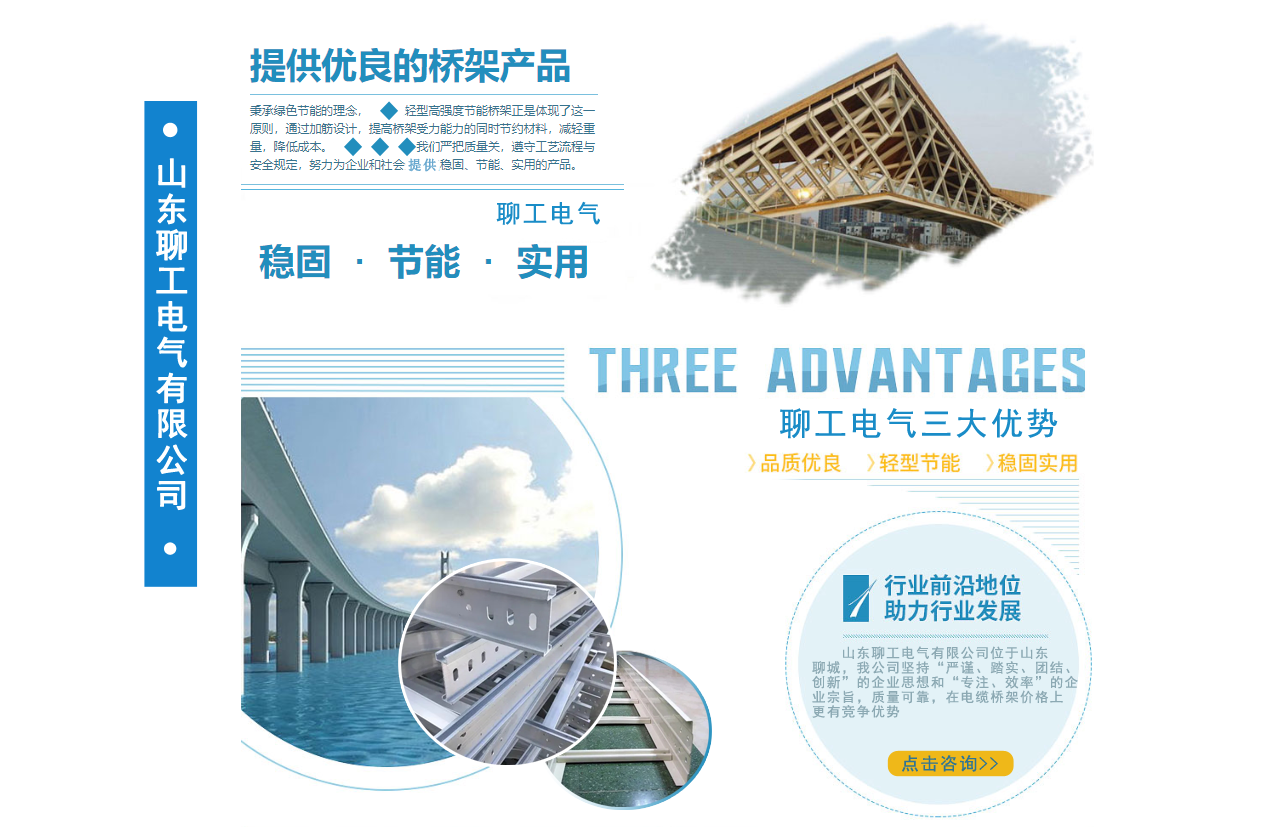 山東聊工電氣有限公司位于山東聊城,是一家銷售各類橋架的公司,公司主營鍍鋅防火噴塑橋架,鍍鋅防火電纜橋架 ,不銹鋼電纜橋架,熱浸鋅電纜橋架,鋁合金電纜橋架,熱鍍鋅電纜橋架,梯式電纜橋架等我公司堅持“嚴謹、踏實、團結、創(chuàng)新”的企業(yè)思想和“專注、效率”的企業(yè)宗旨,質量可靠,在電纜橋架價格上更有競爭優(yōu)勢。公司追求品質,配有研發(fā)人員,進行產(chǎn)品的改革和創(chuàng)新,服務先進走出了一條富有企業(yè)特色的可持續(xù)化發(fā)展之路! 我公司鄭重向你承諾:保證最好的質量,以低的價格,完善的售后服務,來答謝新老客戶??商崆半娫捖?lián)系。...